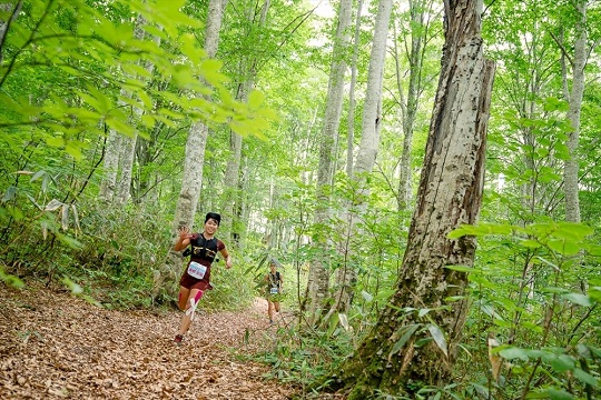 ダウンヒルから始まるちょっと珍しいレースで、野沢温泉の気持ちいいトレイルだけを詰め込んだ楽しいコースです。