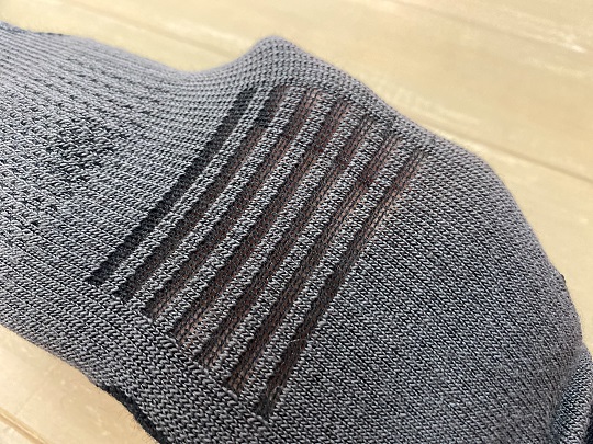 さらに、土踏まず部分は程よく着圧が強くなっており、靴下のズレを防ぐと共にアーチサポートもしれくれる。
