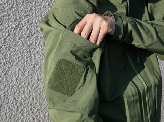 軍採用モデルなので、両側のショルダーポケットに部隊章を貼り付けることが出来るベルクロと、左胸には階級章などを装着出来る取り外し可能なタブがあります。