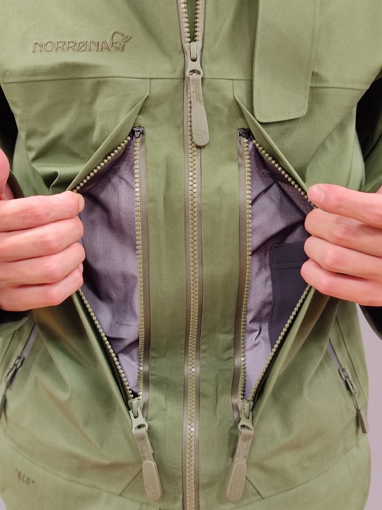 2つのショルダーポケット、2つのチェストポケット、2つのハンドポケットを装備しています。