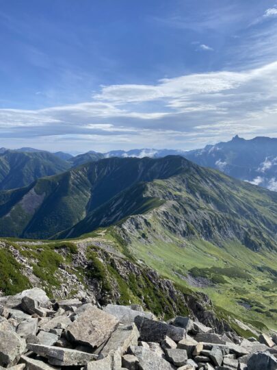 僕は三俣蓮華の登りからさらにペースダウン。中川さんに付いていけず。まぁルートも分ってるしマイペースで。