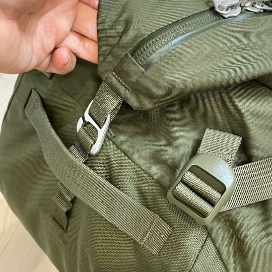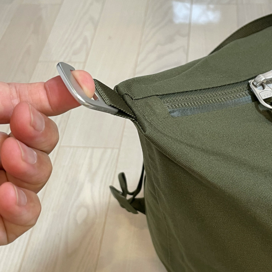 両サイドに付いているフックで、バック自体を圧縮することも可能です。