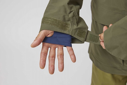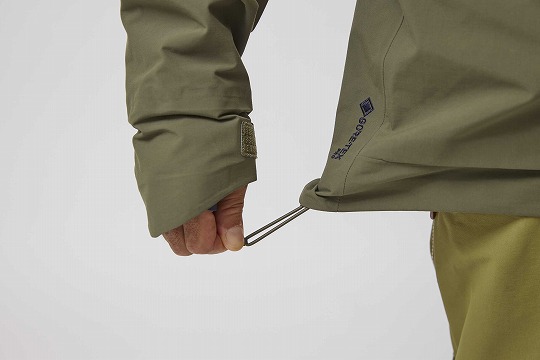 GORE-TEX® PROの中でも、透湿性(通気性)重視のGORE-TEX® PRO MOST BREATHABLEをボディメインに、色の濃い肩や肘の部分には耐久性重視のGORE-TEX® PRO MOST RUGGEDを使用。