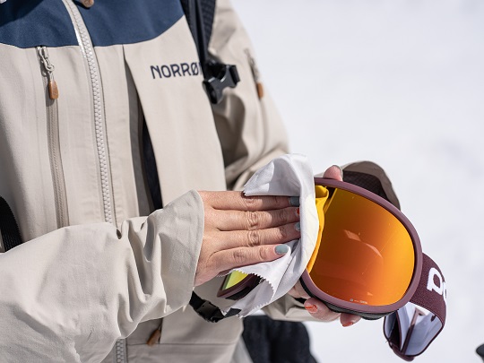 しっかりストラップで繋がれていて、ちょっとした合間にゴーグルをサッと拭けて本当に使い勝手いいです。