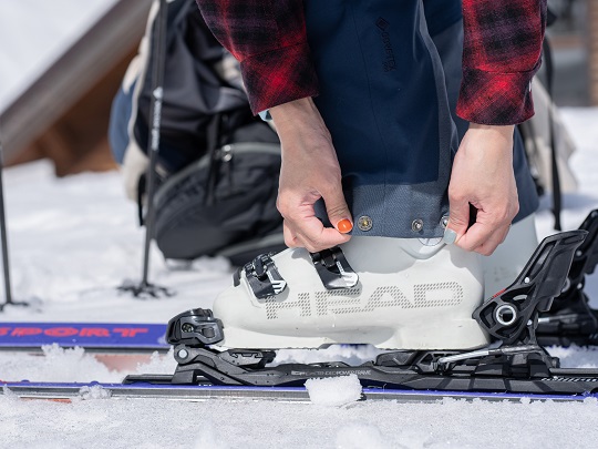 バックカントリーシーンでアイゼンを履いたり、滑り終わってブーツを脱いだ時にも便利な機能ですね。