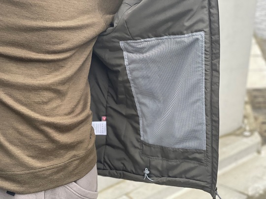 それ以外の生地は高い透湿性と肌触りの良さを備えるC9 Ripstop™を使用、濡れても保温性を損なうことのないPrimaLoft®_ Gold Active +を中綿として使用。