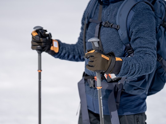 抜群の操作性でピッケルやロープワーク、バックカントリーシーンでの登高時のシール着脱など、装着したまま作業が行えるグローブになります。
