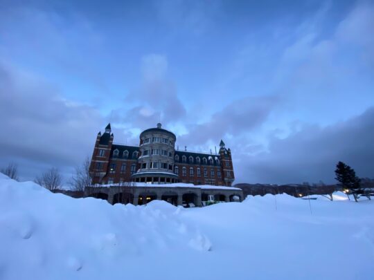 余市湾とシリパ岬を見下ろす 自然に囲まれた高原に建つ、北欧の古城をイメージしたゴルフリゾートホテル。
