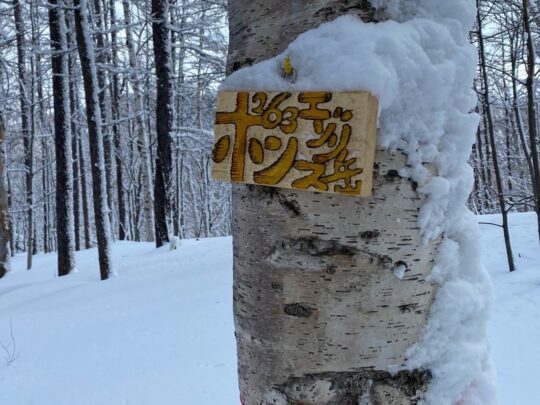 山頂標識はEZORISU HONEYS・ミカ隊長の手作りです!雑ですが愛情込めて彫ってくれました!