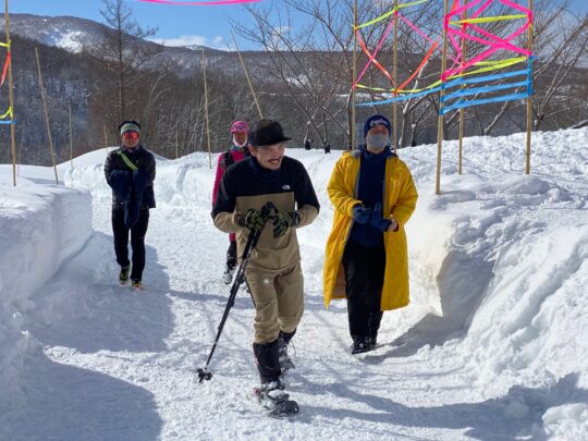 一日目のスノーラン、いつも一緒にPR活動を行っている余市町観光協会の皆さんにもご参加いただき、ずっとゴールで応援してくれていました。