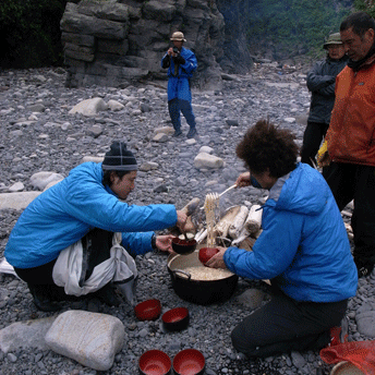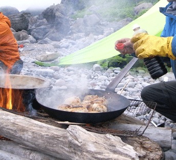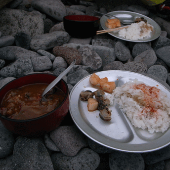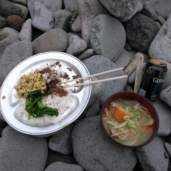 最後の日の朝は前の日までに残ったおにぎりを焼きおにぎりにして。