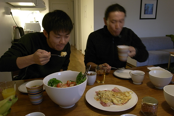 今朝は遠藤シェフによる卵焼きとベーコン、そしてサラダ、みそ汁、ごはんといわしのごま煮。最高の朝メシでスタートしました。朝メシが楽しみになると1日がいい感じにスタートできるのがなによりです。こっちの朝メシだとどうしても胃がもたれる感じなんですよねぇ。まぁ贅沢ですけど。