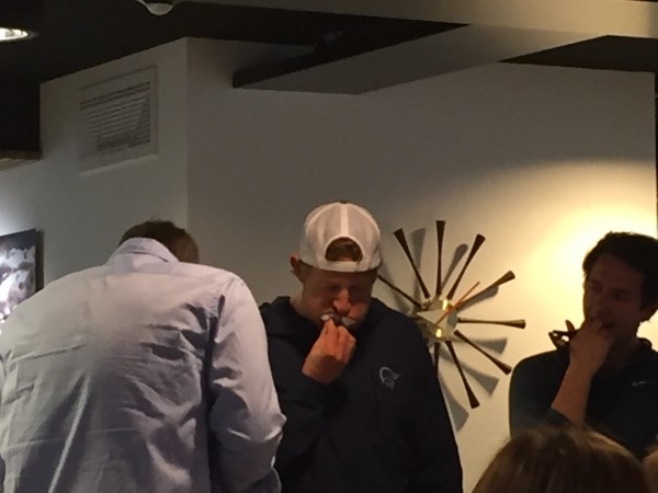 これはじつに分かりやすいゲーム。ひとりが逆立ちして残りのメンバーが体を支えて、残ったメンバーが逆立ちしてるメンバーにビールをひと缶飲ませて、飲み終わるまでの時間を競うというゲーム。かなり辛いであろうこのゲーム、支えてる方はかなり笑えました… ゴメン、LUDO。